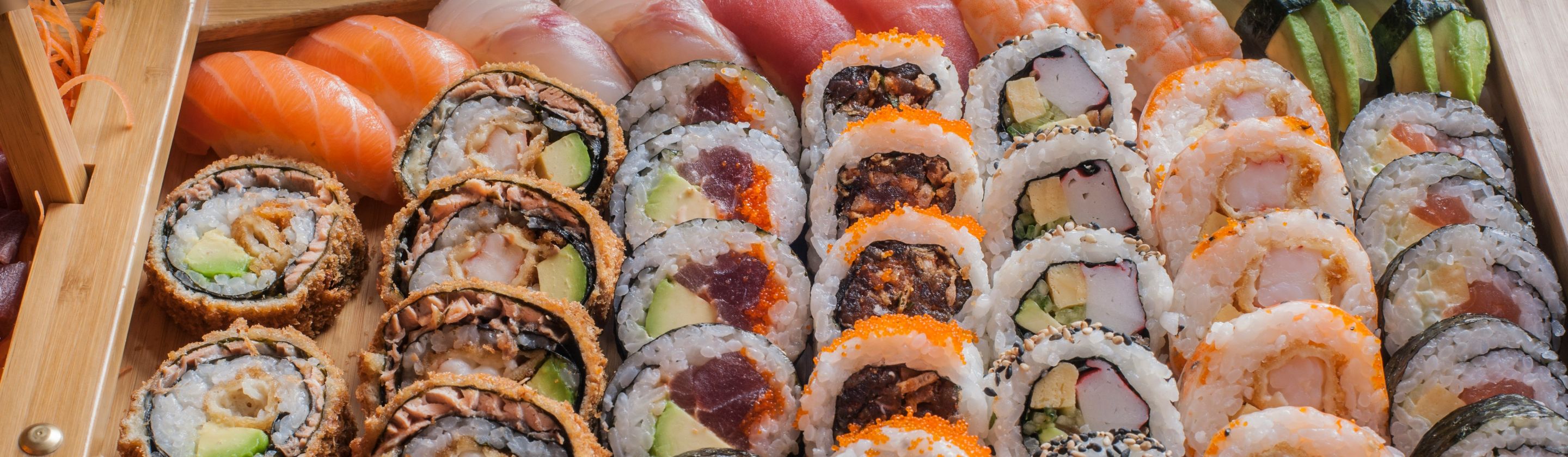 This is one creative role that Americans have jumped feet-first into ordering. It features eel, cucumber, and avocado and is topped with sauces and tobiko. People love its presentation, the layers of umami, and the sweet and savory combination of flavors. The crunch is the cherry on top.