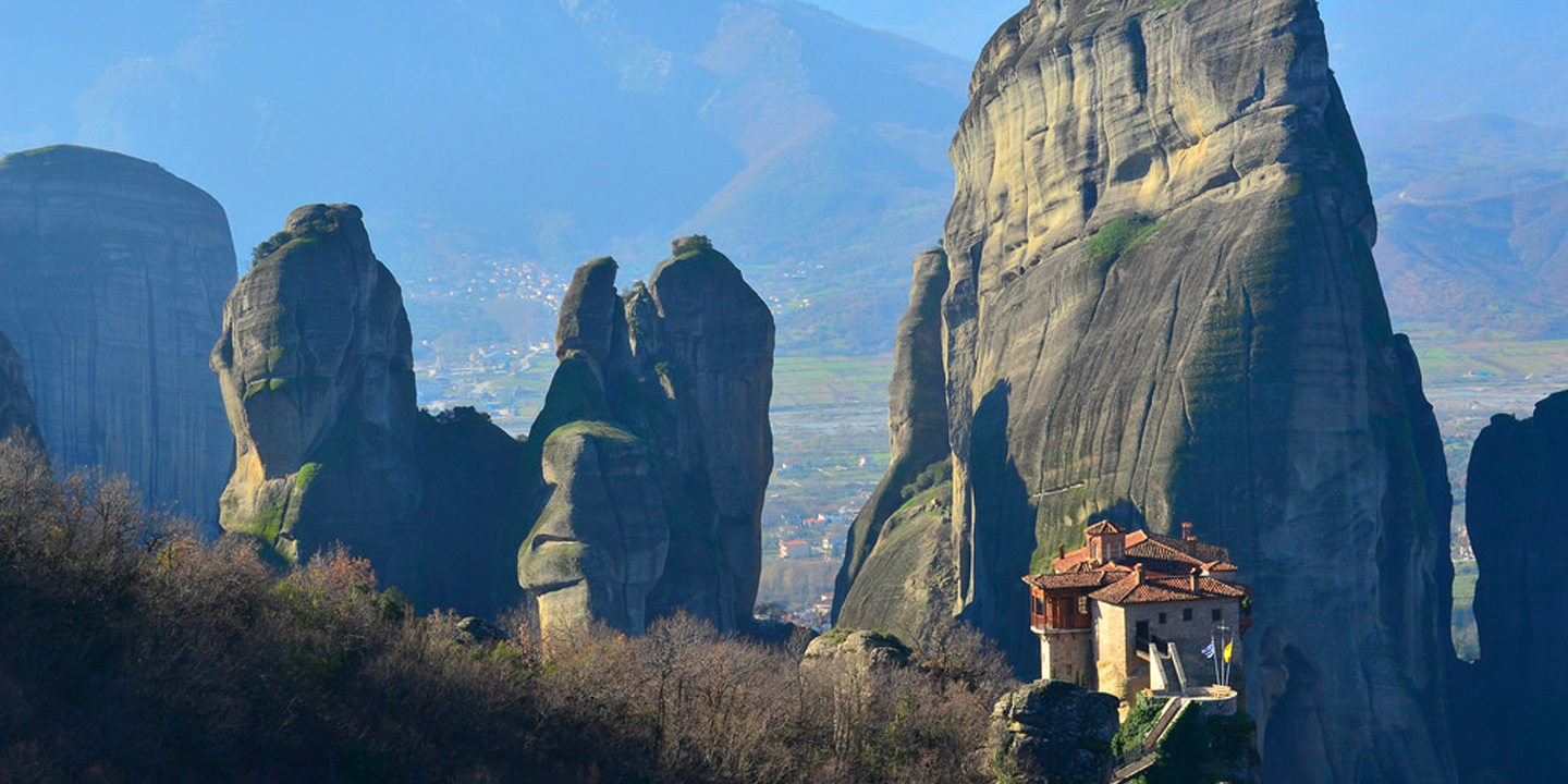 At Meteora nature's grandeur meets workmanship; if the impressive rock formations aren't enough to inspire a deep sense of awe, the monasteries built precariously on top of them surely will be. The first monks arrived in the 14th century and built an impressive monastic community on top of giant mountains and steep cliffs. The astonishing constructions are still inhabited by a number of monks and nuns today.
