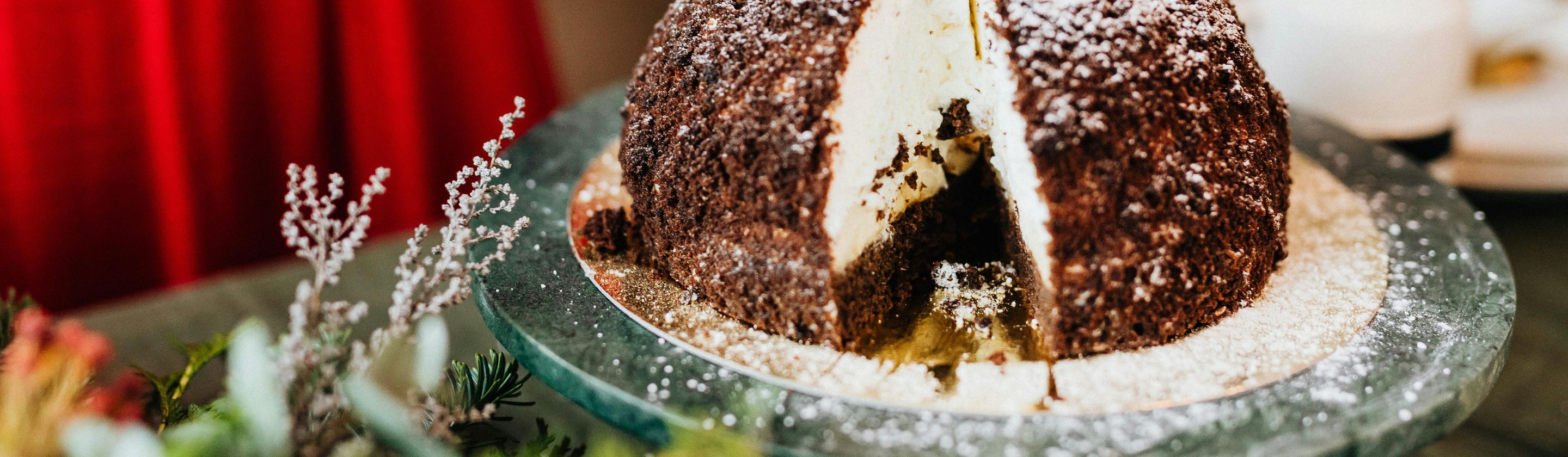 Ah, o clássico tronco de Natal. Este bolo doce, macio e esponjoso é feito com creme de leite, ovos, açúcar (muito mesmo) e essência de baunilha. Embora a versão de chocolate - com chantilly de avelã - pareça a mais festiva, às vezes você verá uma versão de baunilha ou eggnog.